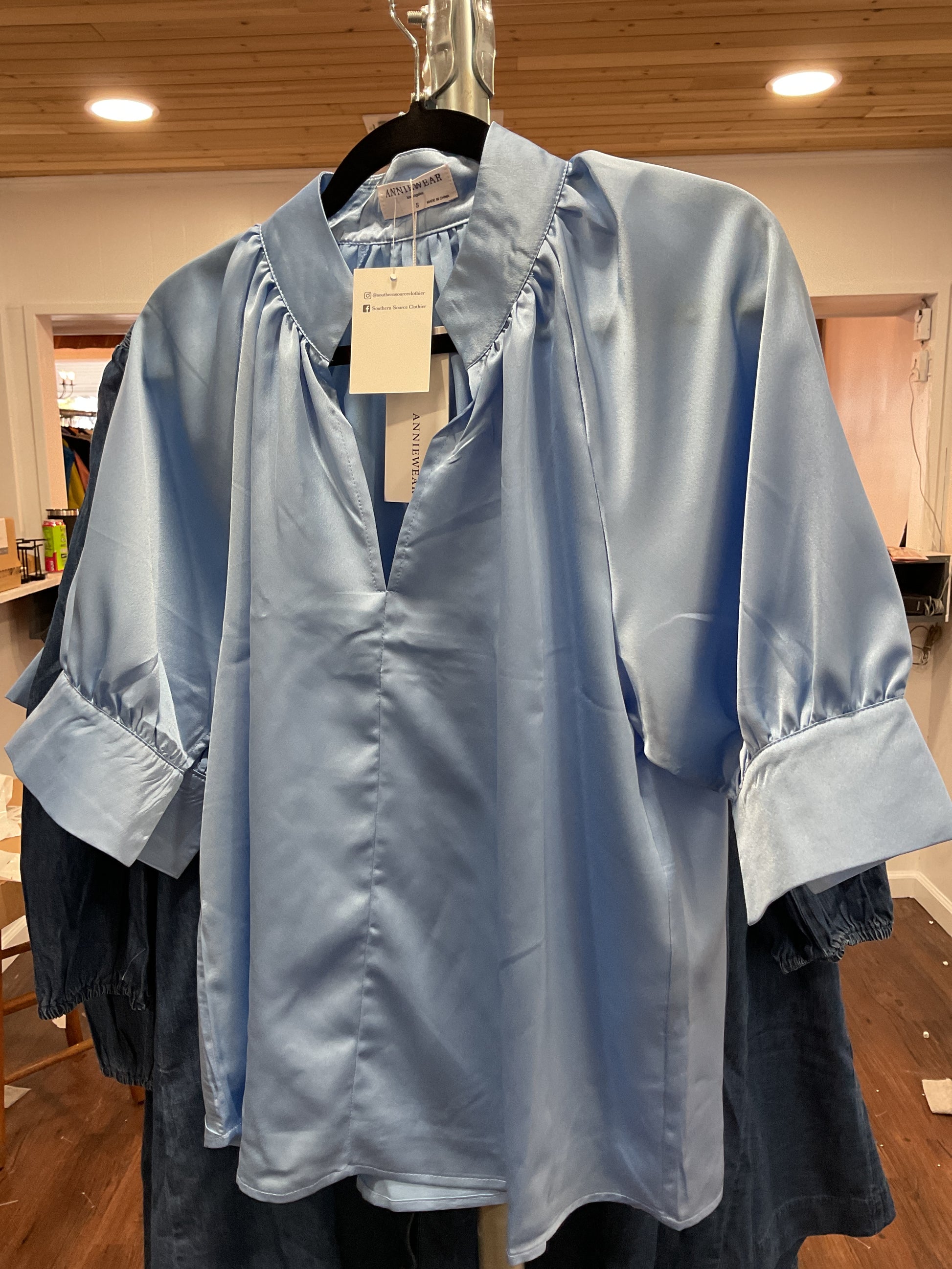 Blue Satin Open SS Blouse
