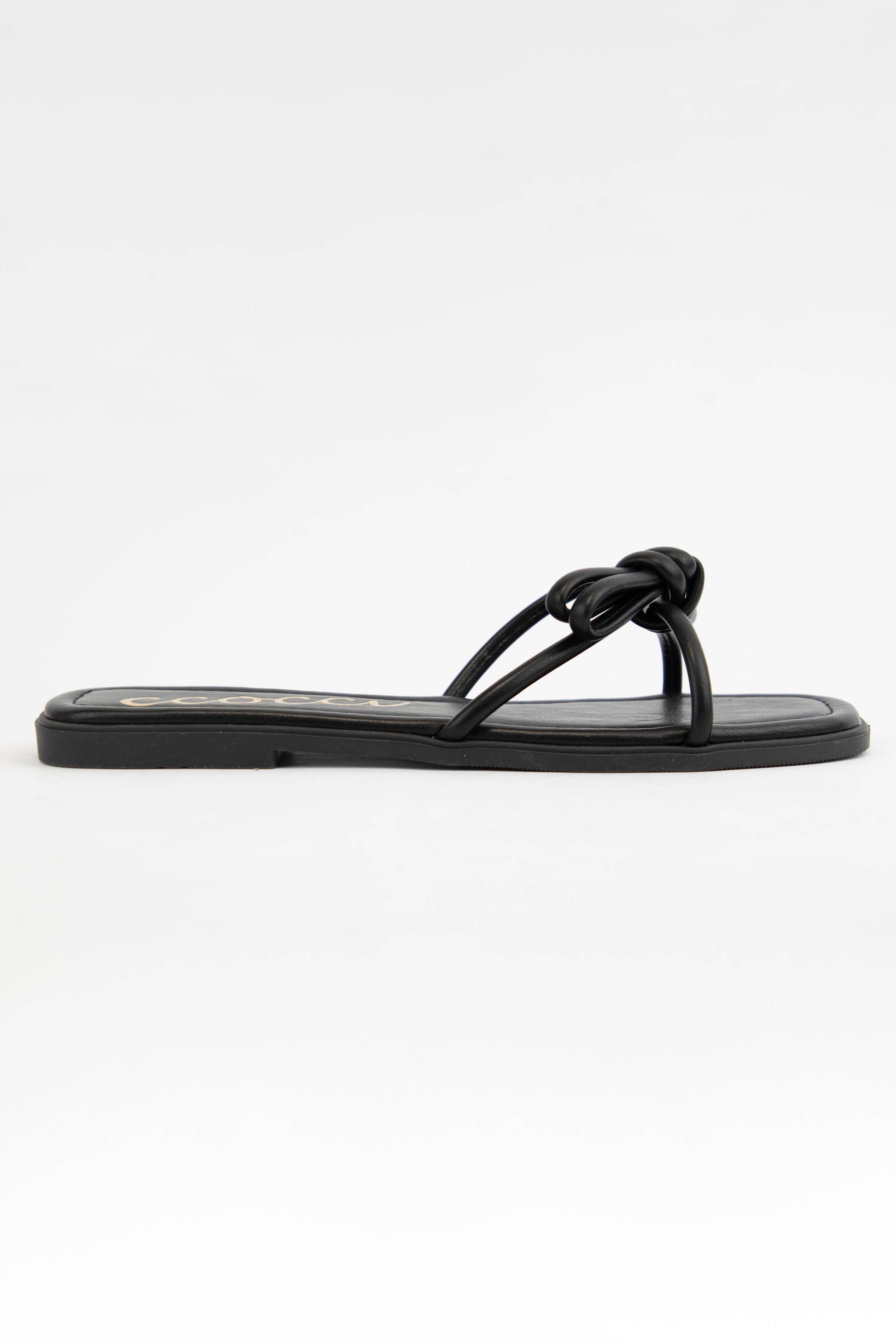 SEMI SQUARE TOE BOW KNOTTED SLIP ON SANDAL PADDED INSOLE FAUX LEATHER