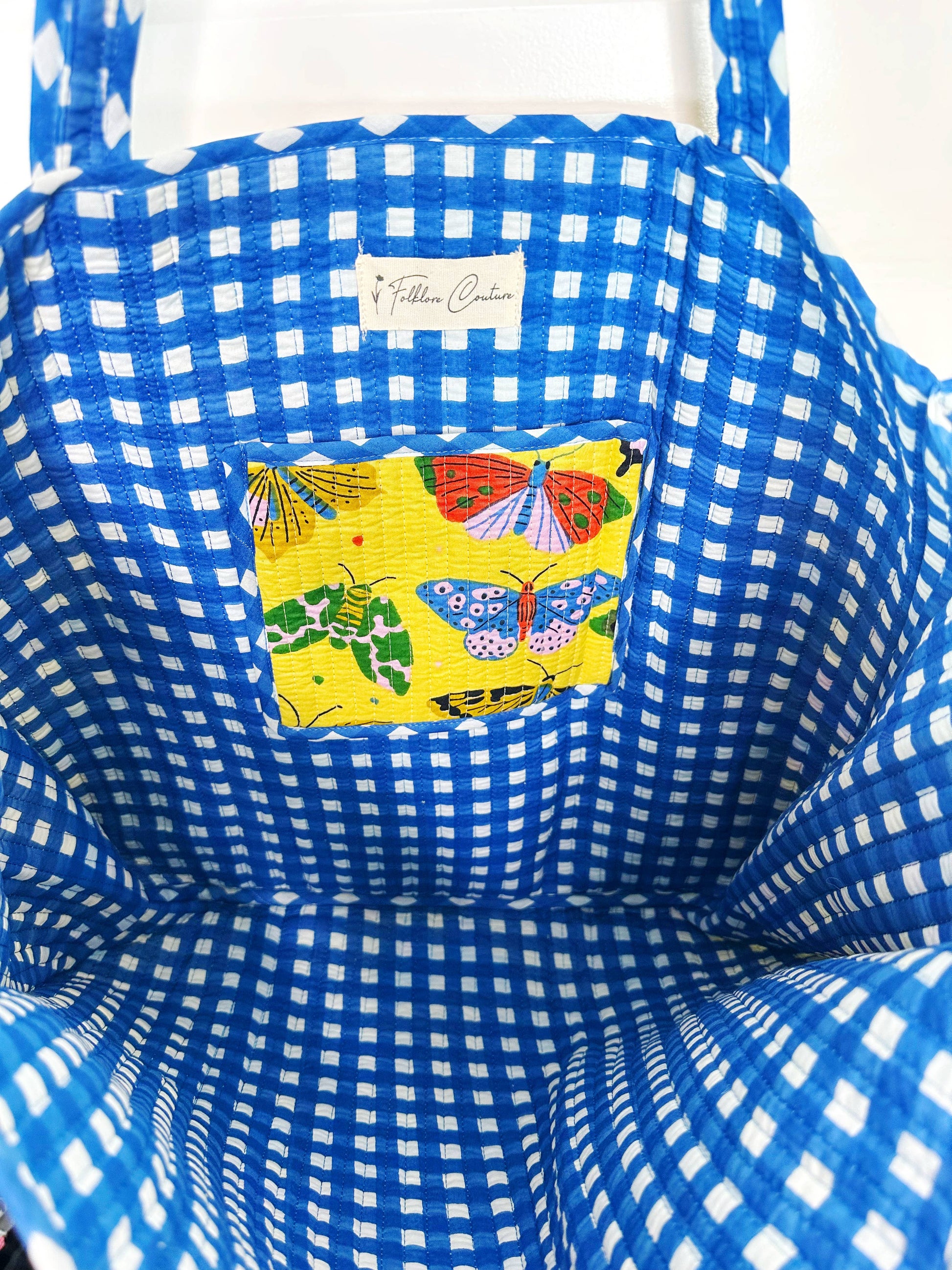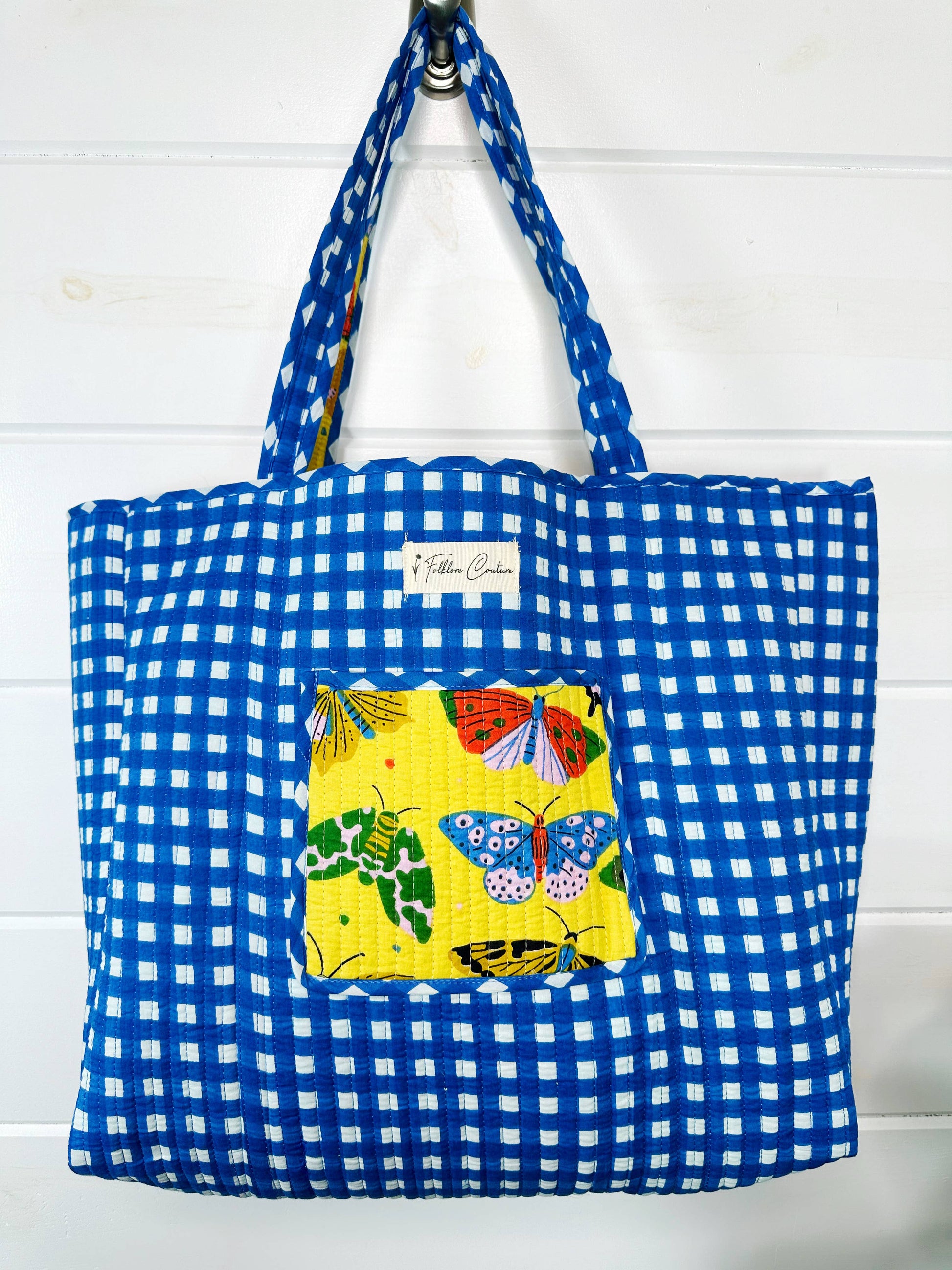 Quilted Tote Bag | Large Travel Bag | Yellow Butterfly Print