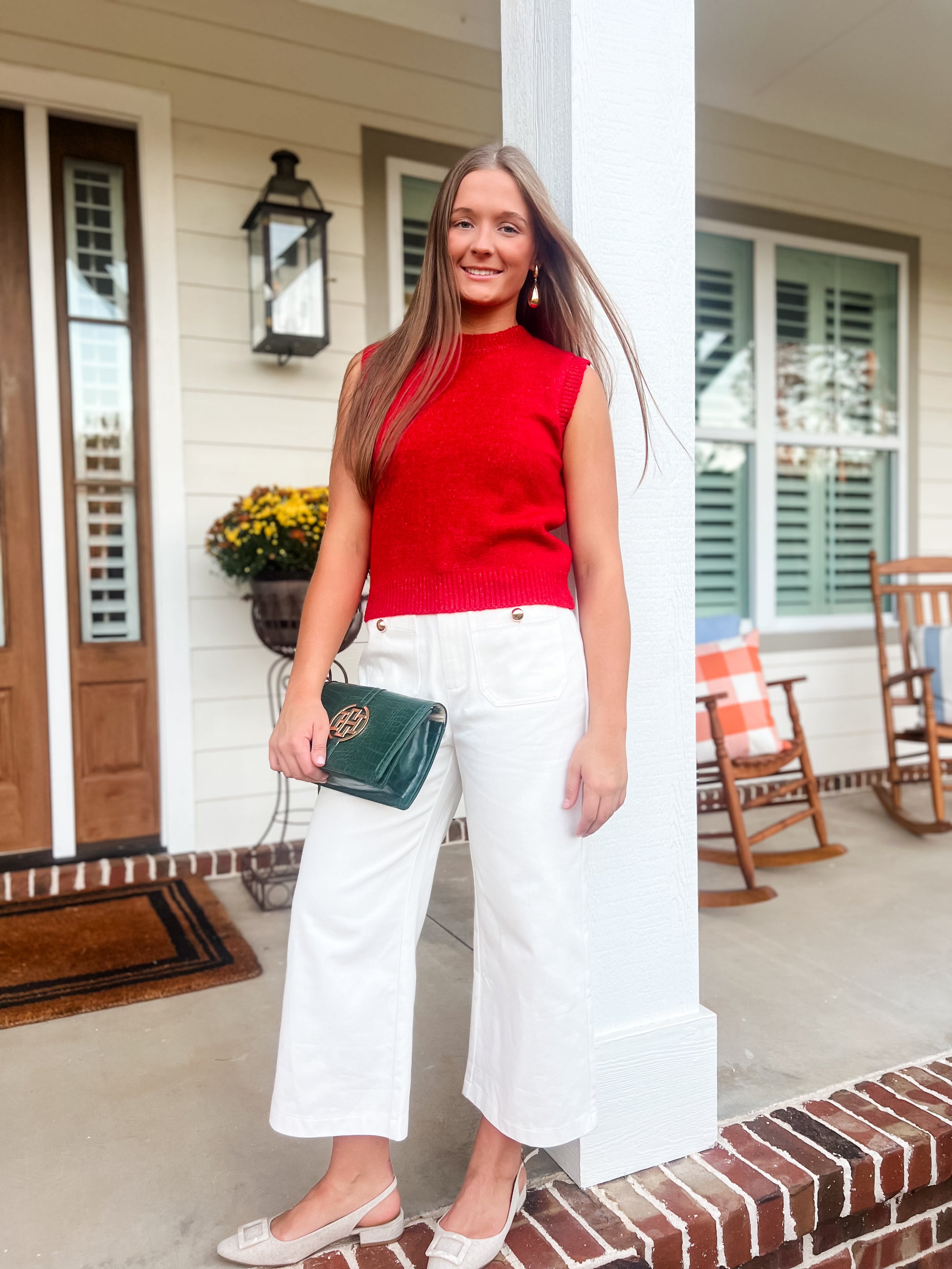 This sleeveless Rosey Red Sweater is crafted from soft materials, providing a comfortable and cozy fit. Perfect for any occasion, this sweater is a must-have addition to your wardrobe.