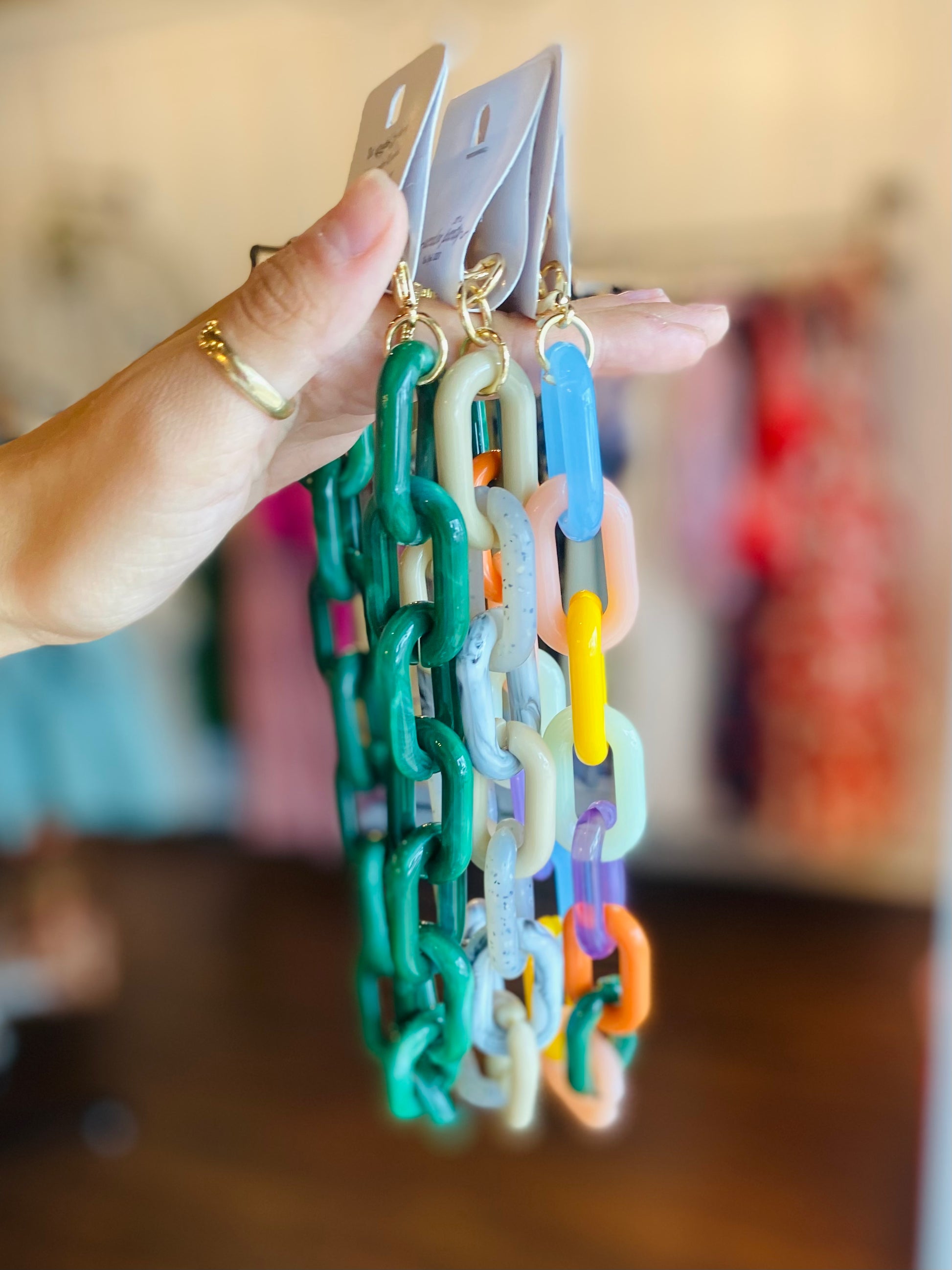 Experience style and versatility with our Spiced Gems. This necklace features a chunky chain design in three stunning colors, perfect for adding a touch of color to any outfit. Made with quality materials, it's a must-have accessory for any fashion-forward individual. Upgrade your jewelry collection with Spiced Gems.