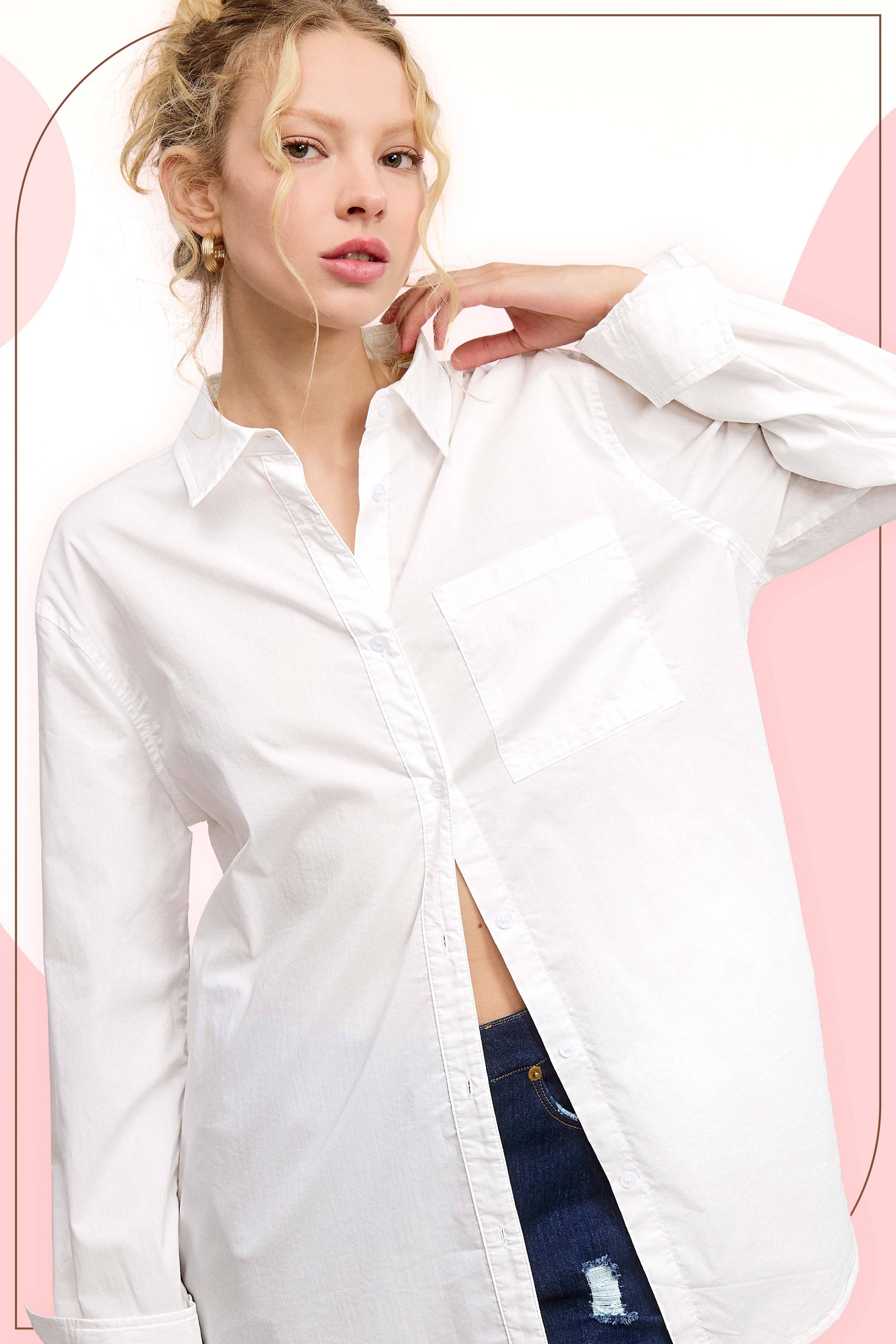 poplin button down shirts, long sleeve, collared neckline, layering piece, oversized, loose fit, chest pocket, formal look, office look, casual outfit, basic shirts, must have shirts