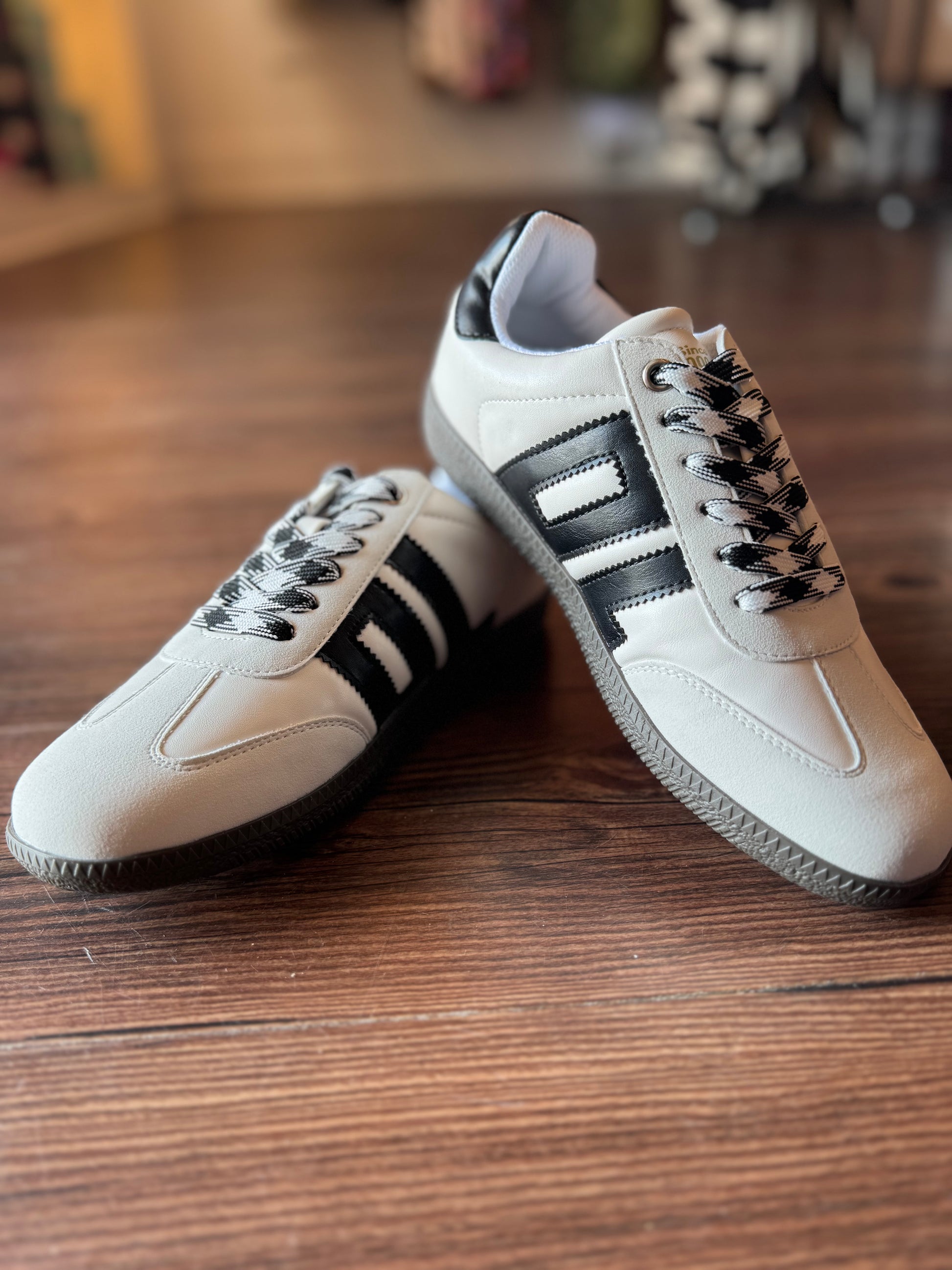 Experience peak performance in the White Track Star Sneakers. The sleek design offers a stylish combination of white and black, with an added bonus of an extra pair of shoe strings in a cream color. These sneakers are perfect for any active lifestyle and provide maximum comfort and support. Upgrade your footwear game now.